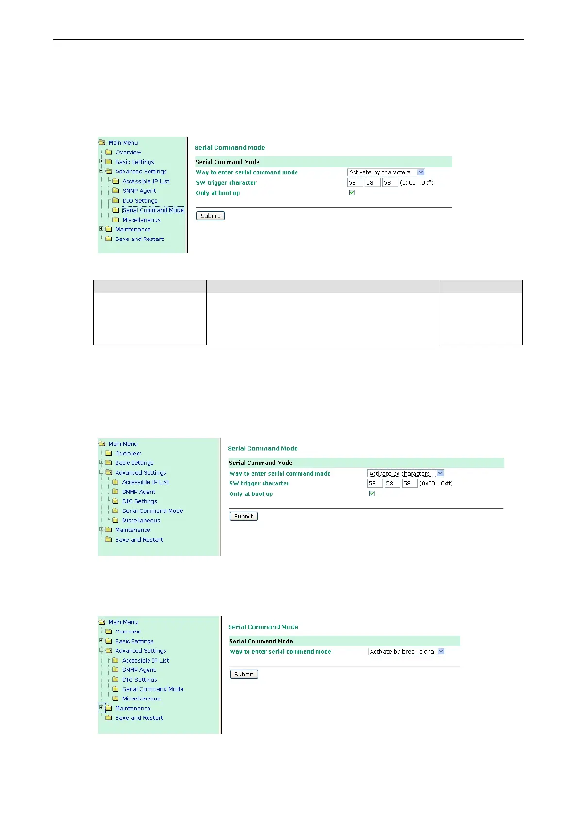 Activate by characters: Access SCM by sending the MiiNePort’s configurable three characters from your
