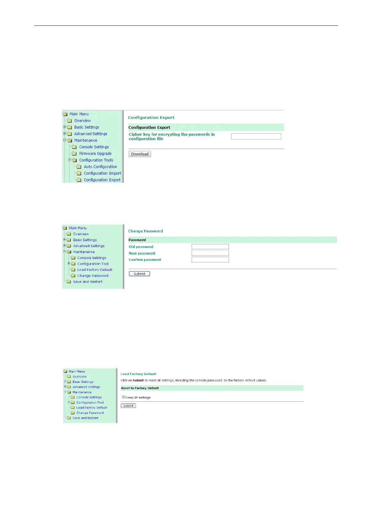 Enter the old password and new password (twice) and then click Submit. The default password for MiiNePort