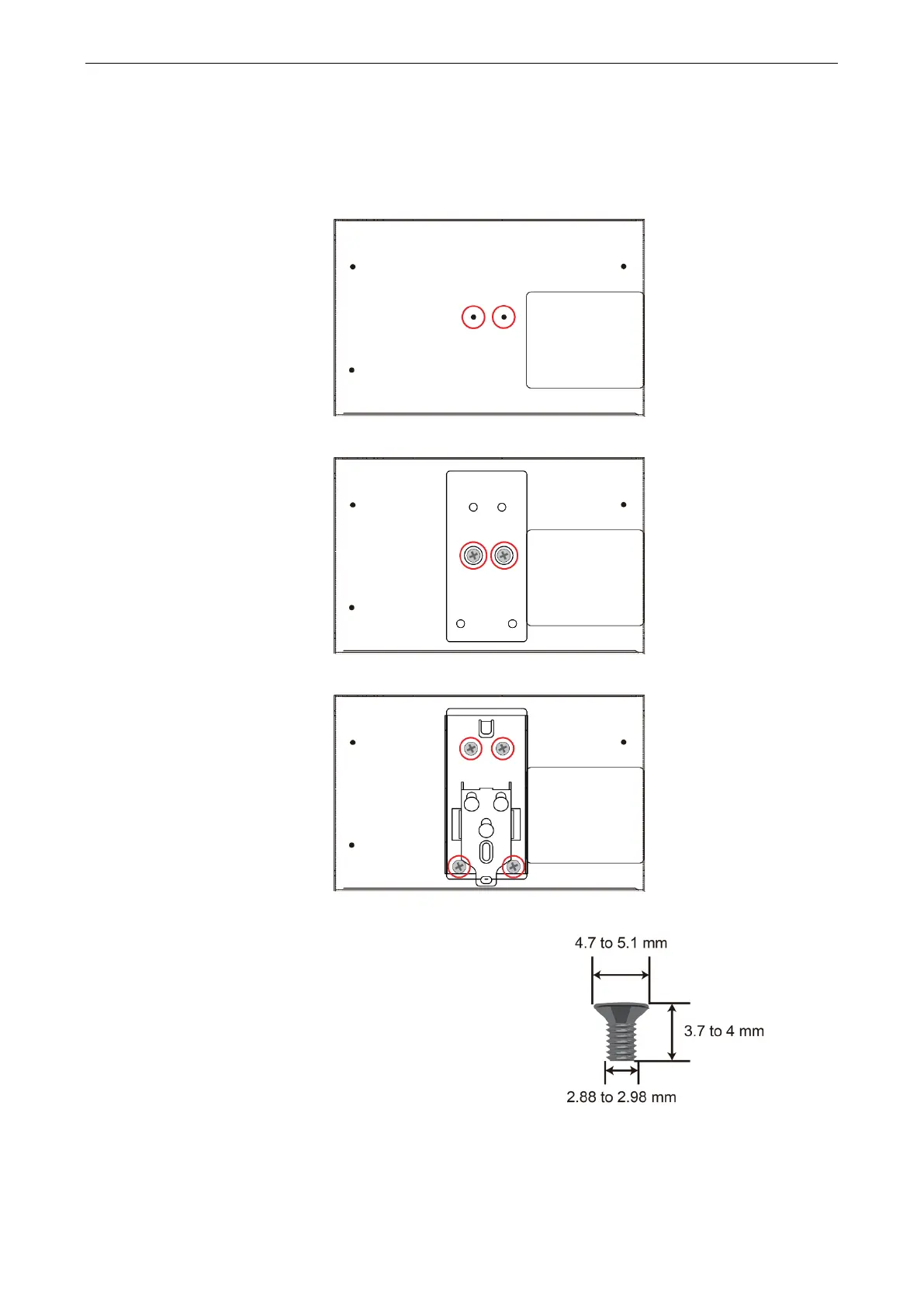 Use another four screws to attach the DIN-rail mounting plate as shown in the figure below:.