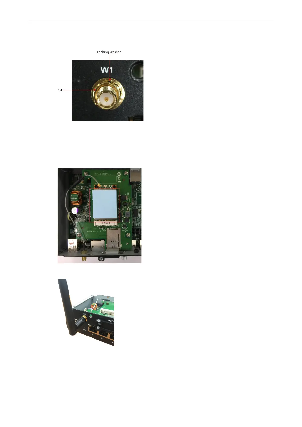 against the front panel and secure the antenna connector by tightening the nut onto the threaded