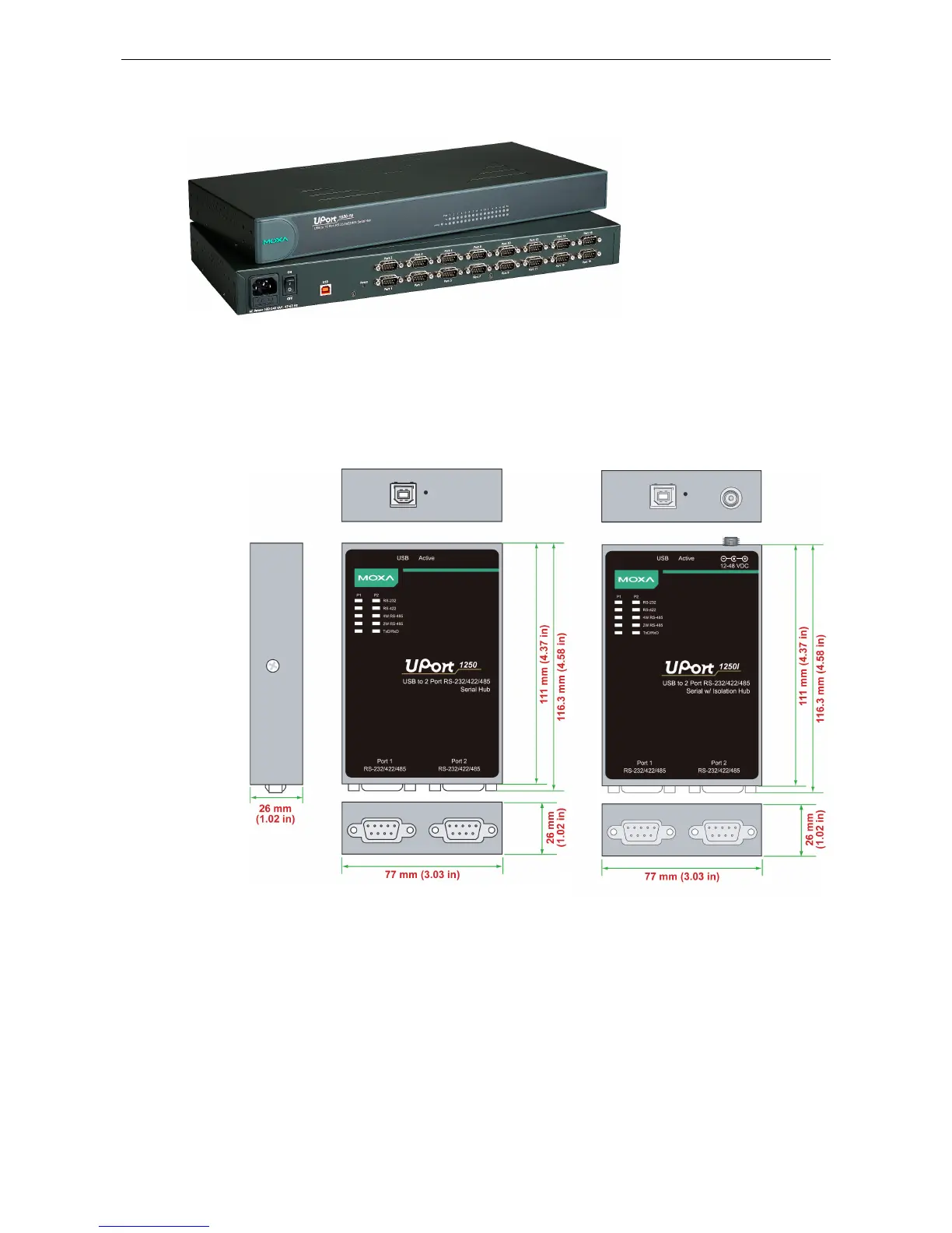 Moxa Technologies UPort 1250 - Uport 1610-16;1650-16; Dimensions; Uport 1250