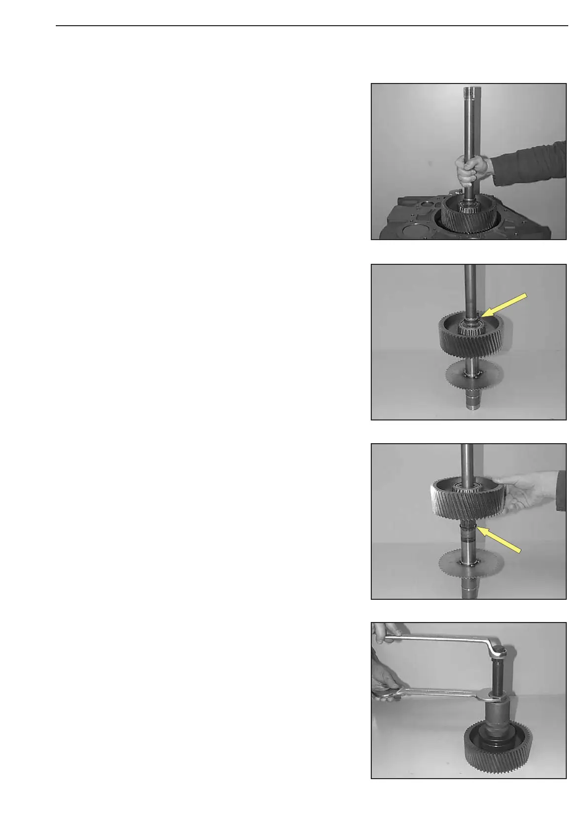 Separate spur gear from shaft and squeeze out circlip (arrow).