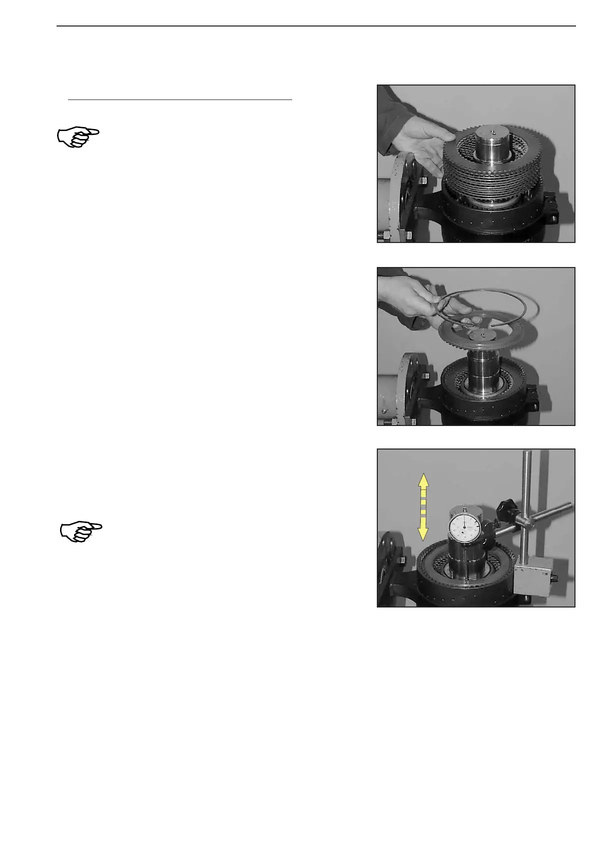 Press on end shim with about 100 N (10 kg) and set dial indicator