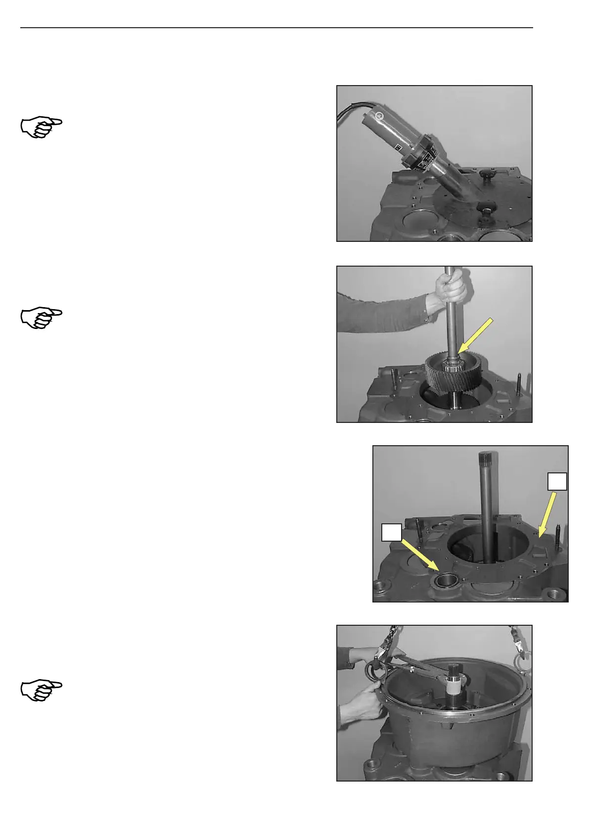 Install two adjusting screws and mount flat gasket (arrow 1).
