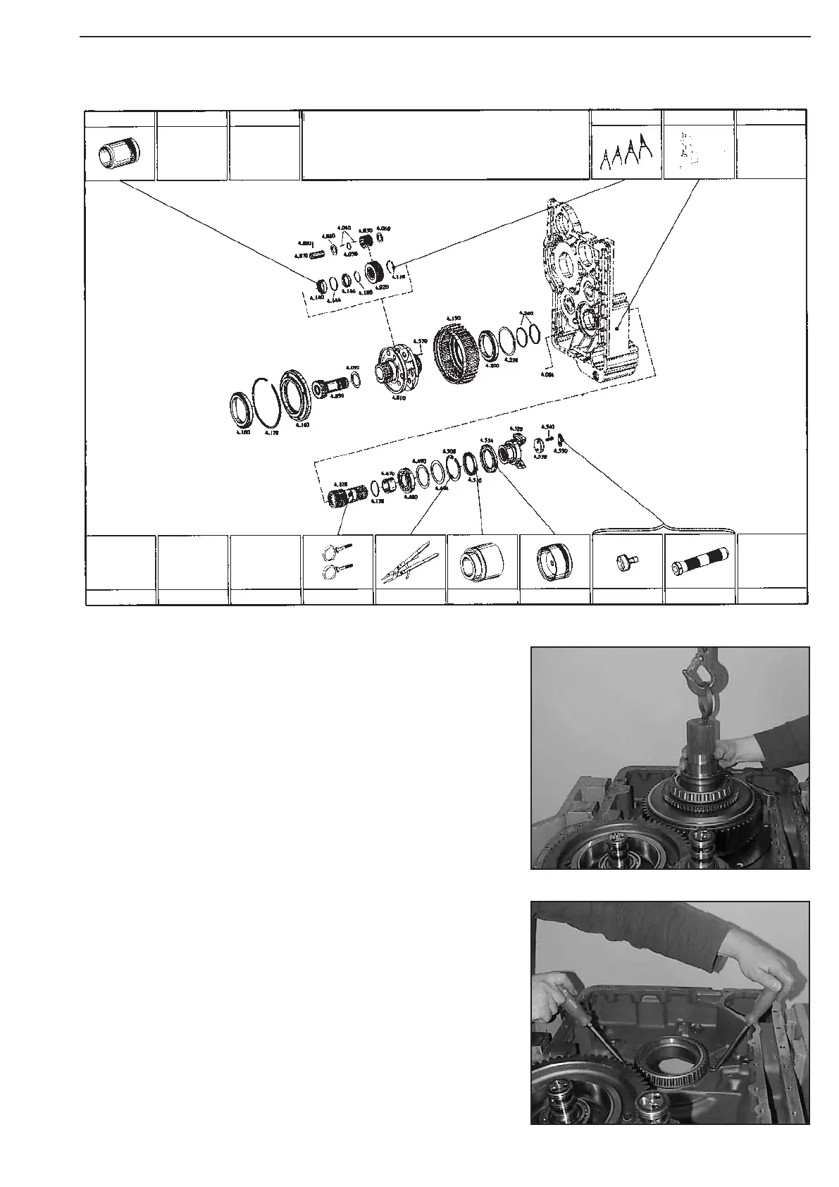 Lift differential out of the gearbox by means of lifting device.