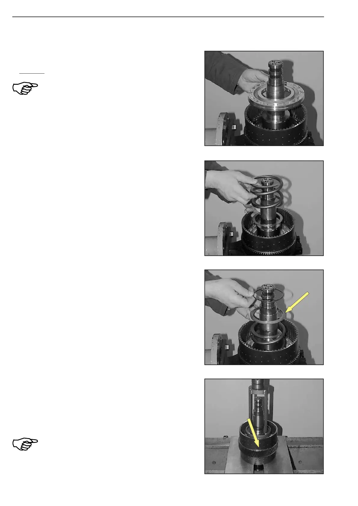 Lay guide ring with the chamfer (arrow) showing upwards over