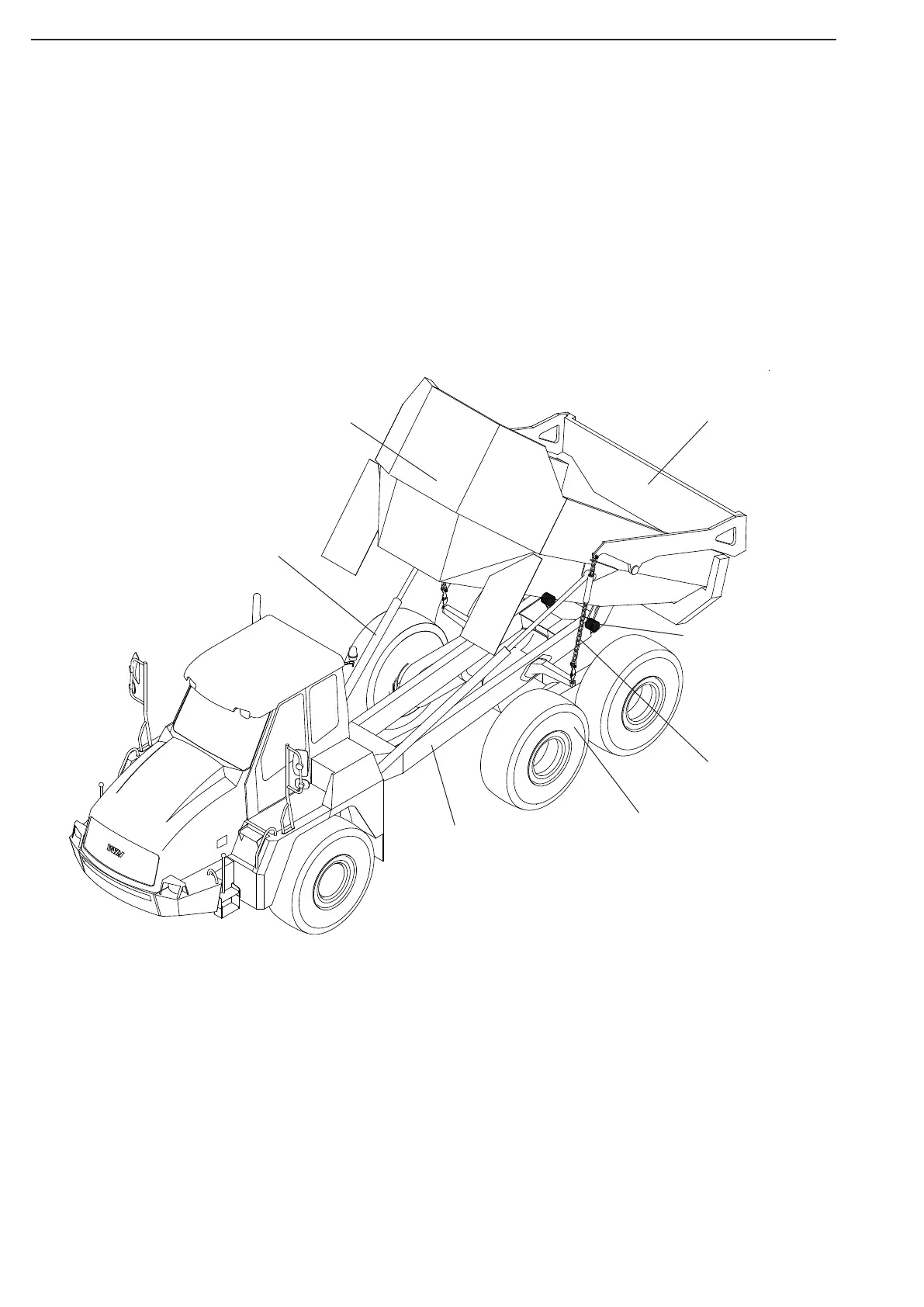The tiltable dumper body is attached to the rear frame in the tilt bearing.