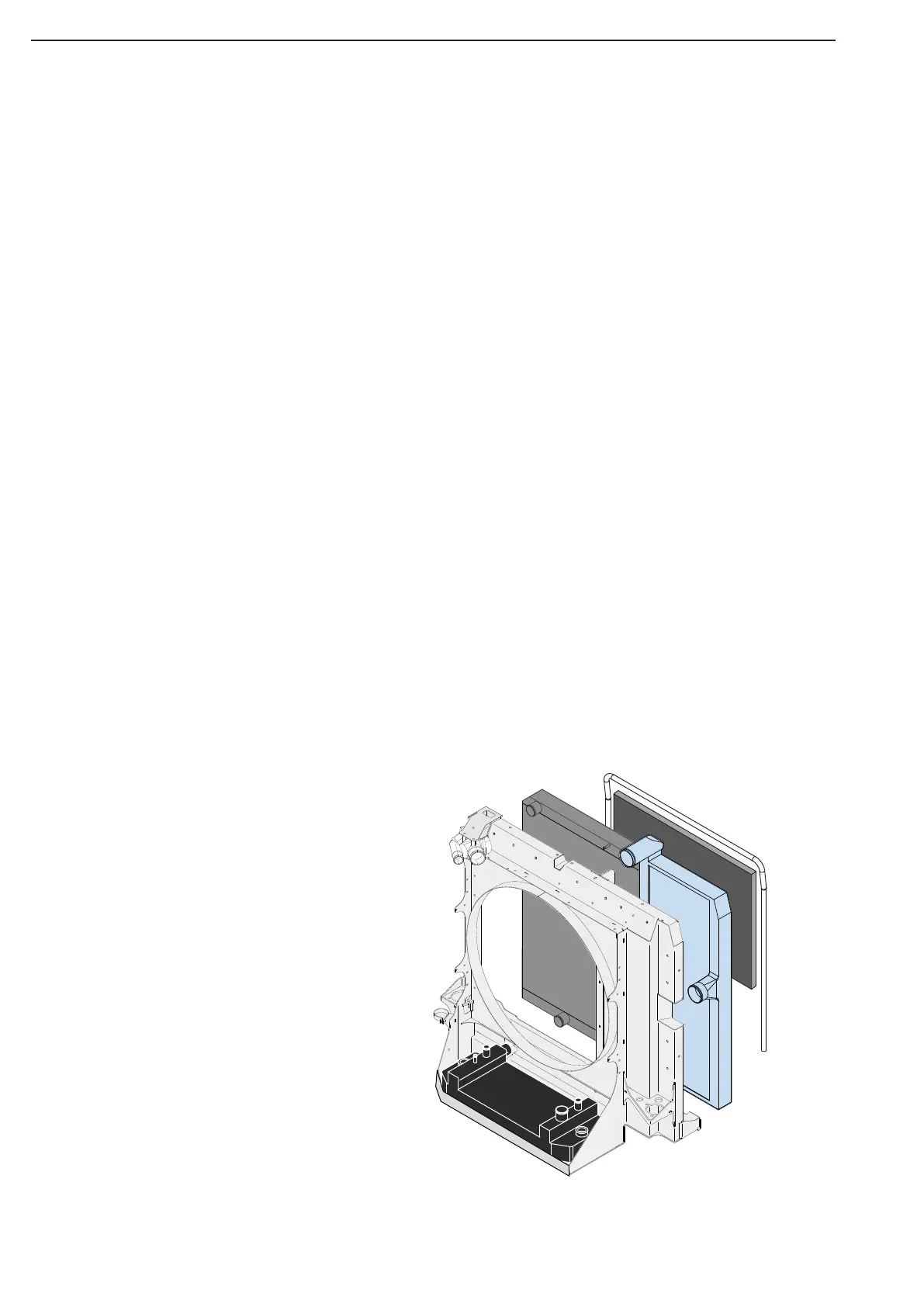 The inlet air to the engine, is by the turbo compressor forced through the charge air cooler. The hydraulic driven