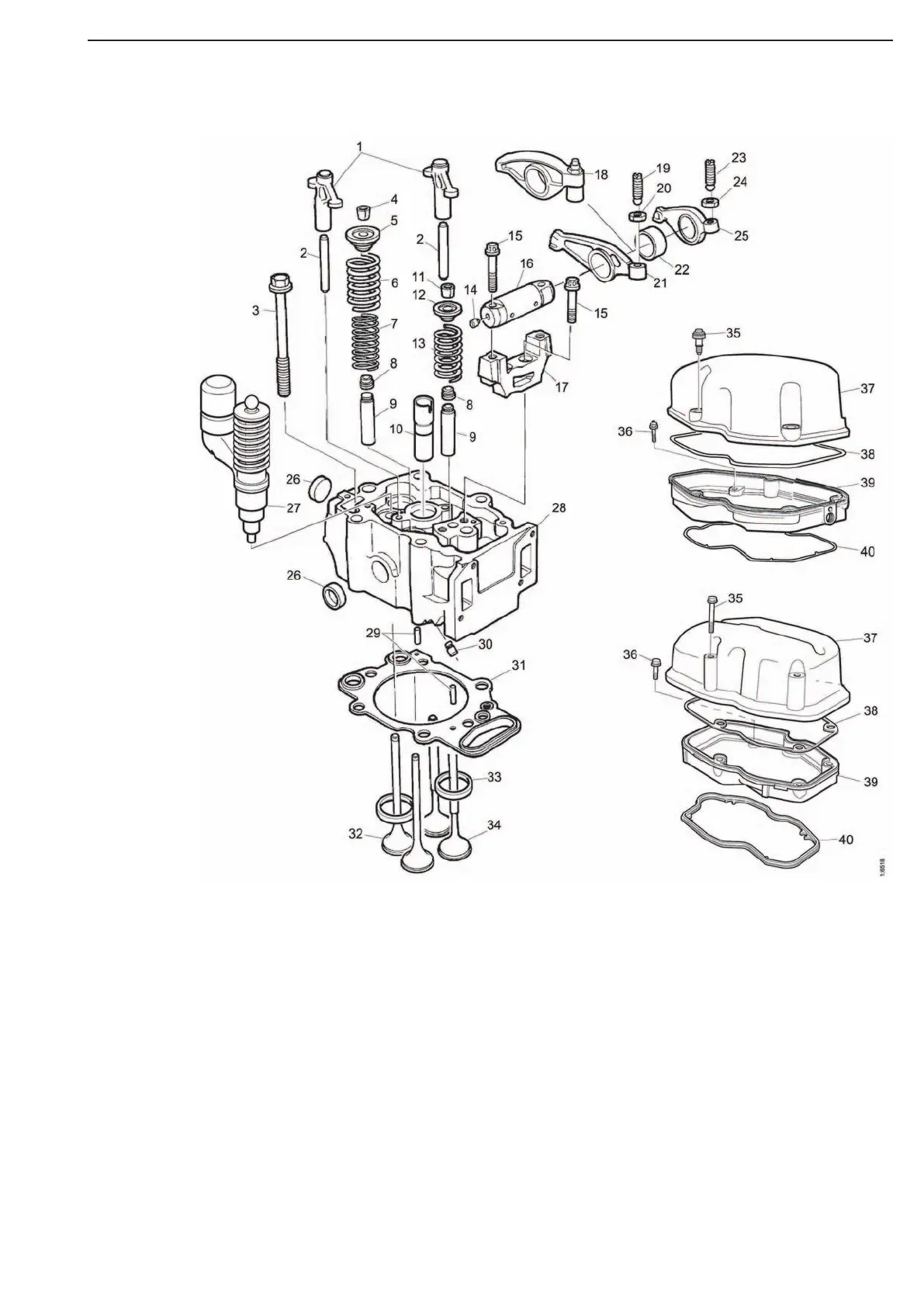 Cylinder head, parts view.