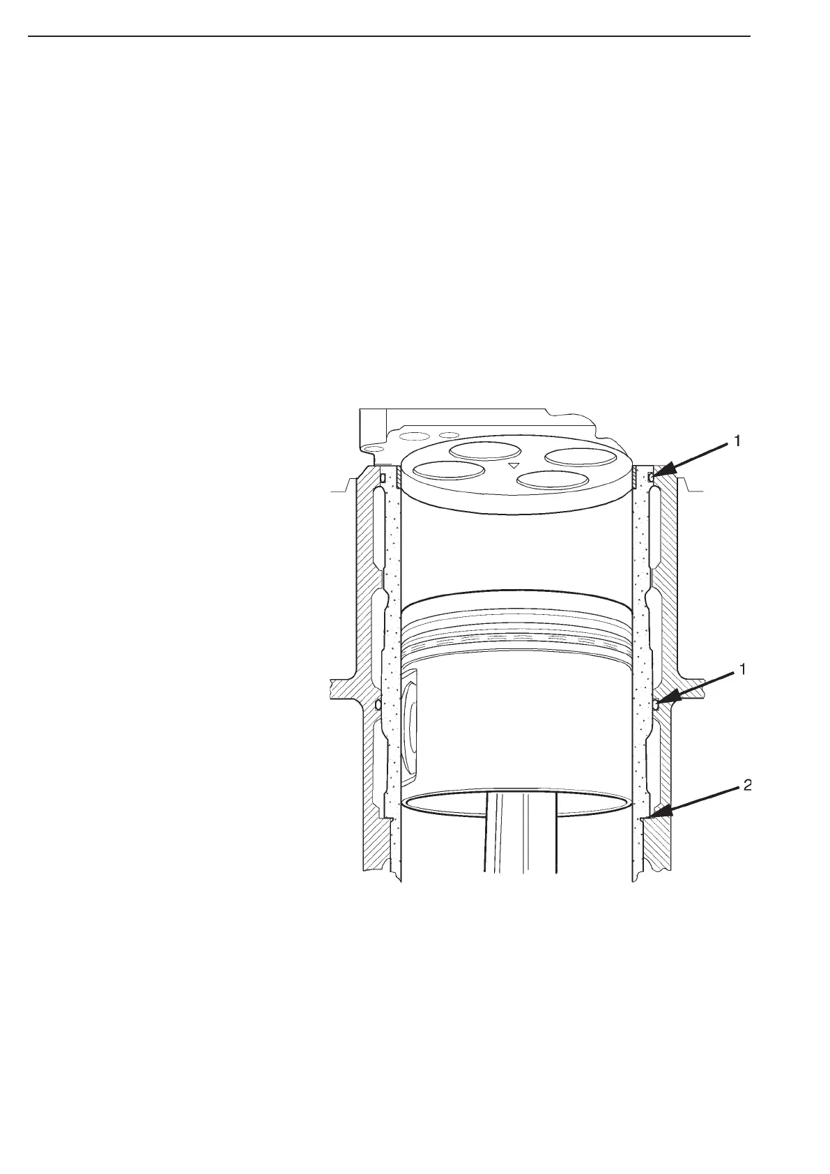 Two sealing rings, one in the block and one in the liner, seal off the coolant jacket. The surface of the liner in