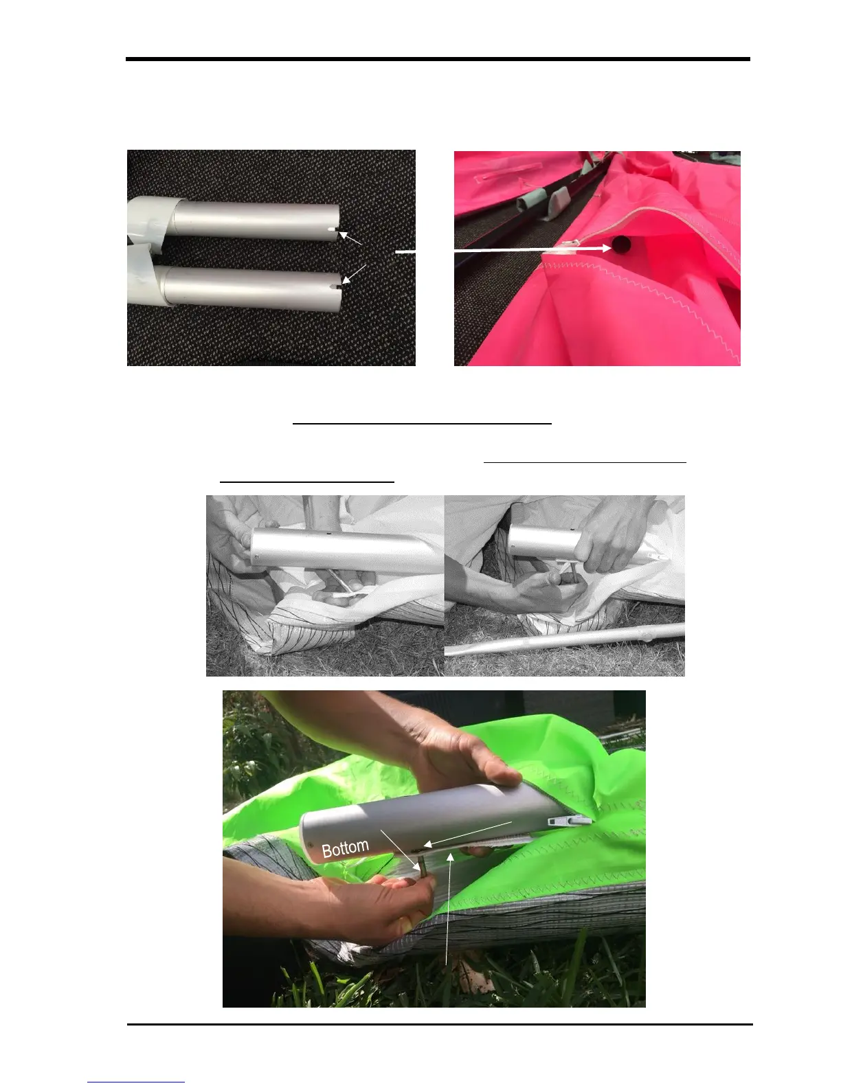leading edge. The sail tab goes to the bottom of the leading edge. Insert the pin through the