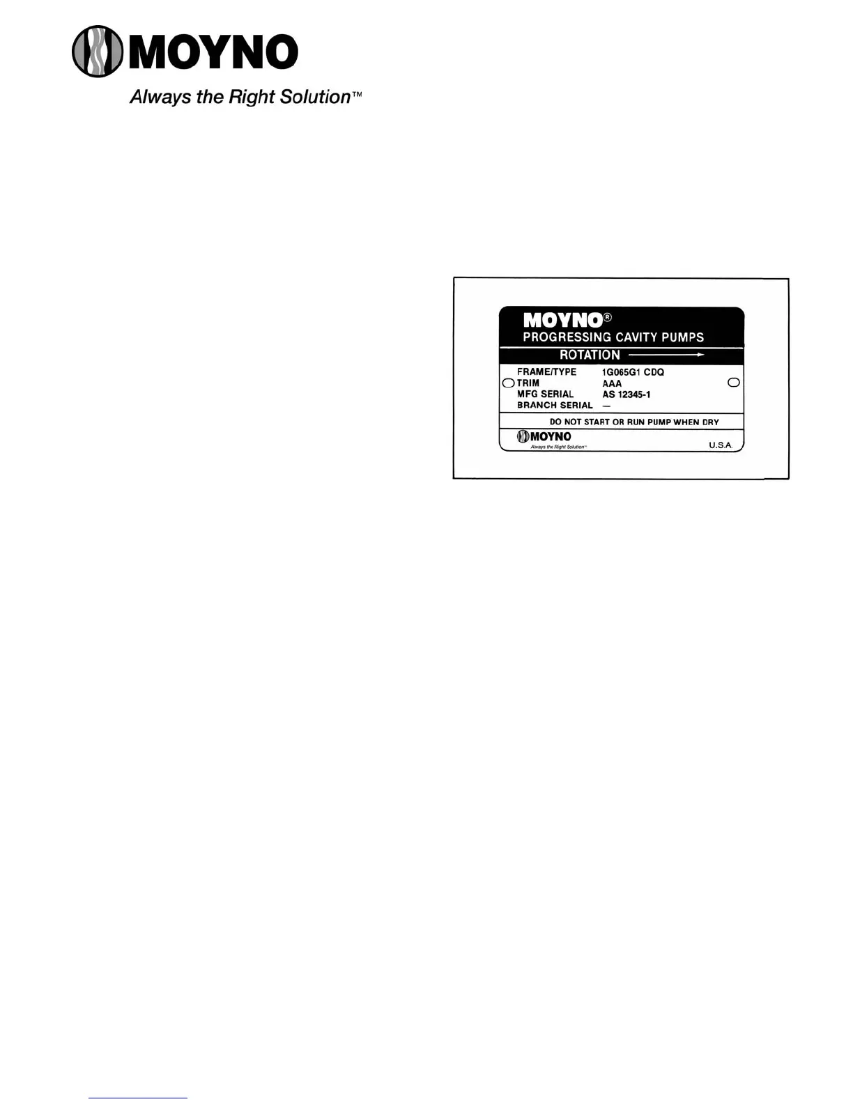 indicates the direction of rotation. Normal rotation of Moyno
