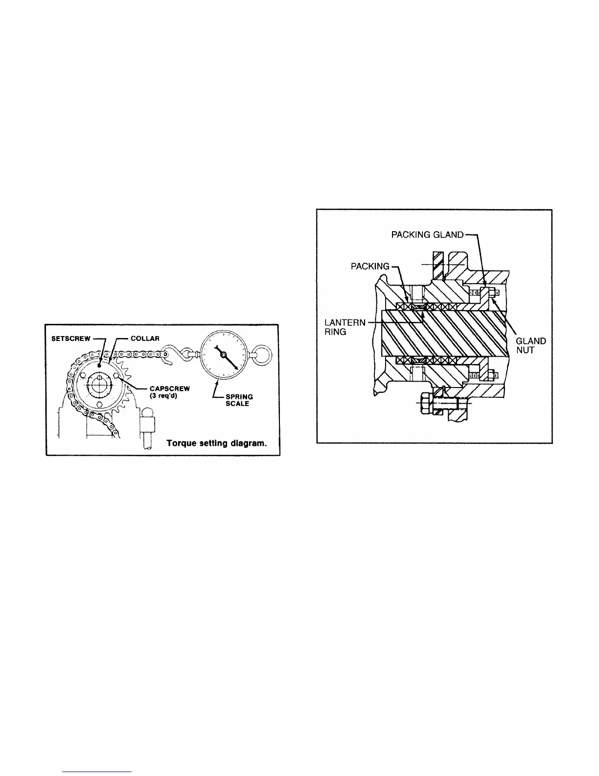 Pumps. Packing gland nuts should be evenly adjusted so
