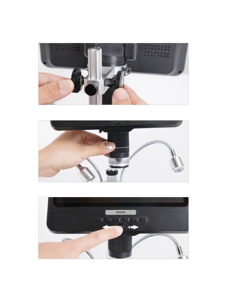 4.Raise or lower the microscope to adjust the object distance.