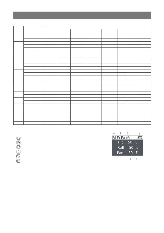 E: Follow speed value: 0-100. Turn the dial to adjust the value