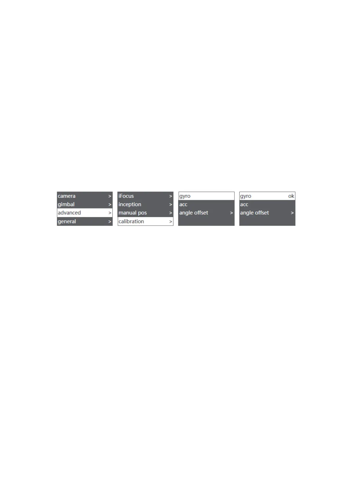 ● Lépjen be a menübe, válassza a haladó>kalibrálás>Gyro cali menüpontot és nyomja
