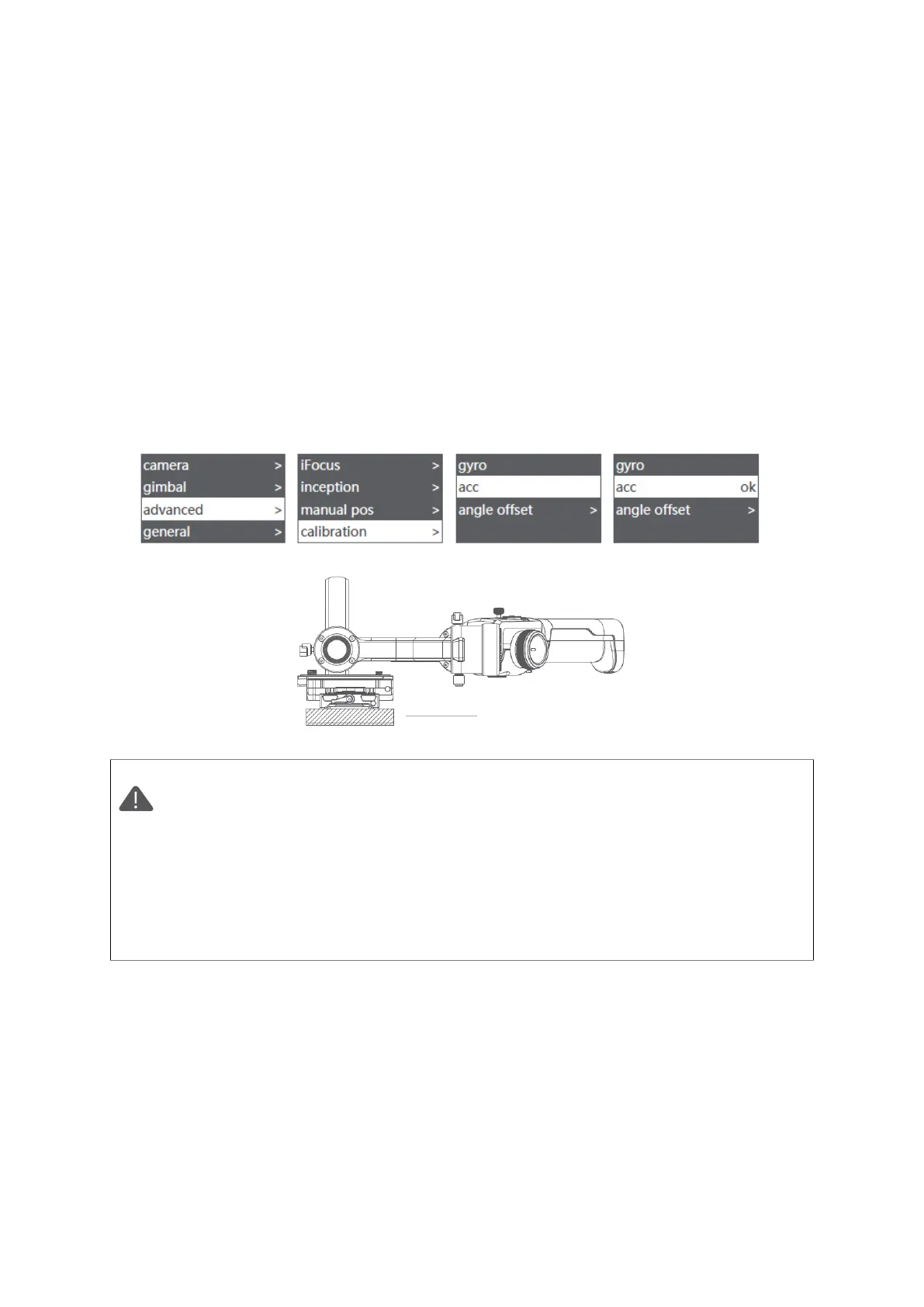 1. Kérjük, a kalibrálás során tartsa a gimbalt mozdulatlanul, bármilyen rázkódás