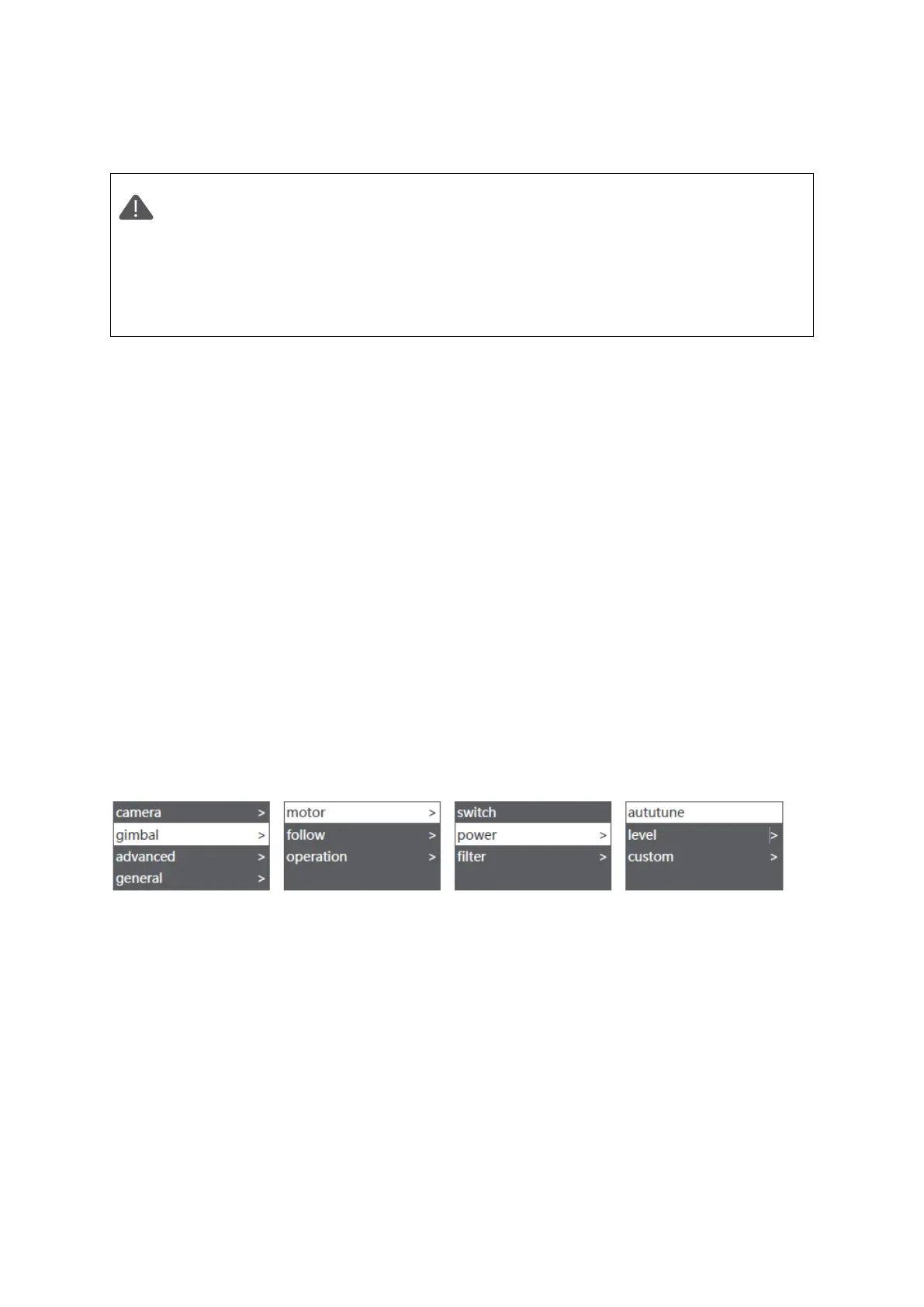 Gimbal" > "Motor" > "Leistung" > "Automatische Einstellung".