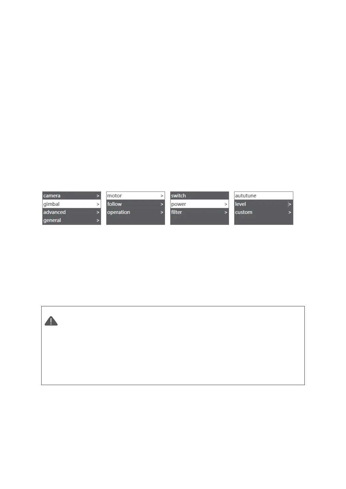 ‘Gimbal’ > 'Motor' > ‘Power’ > ‘Auto-tune’