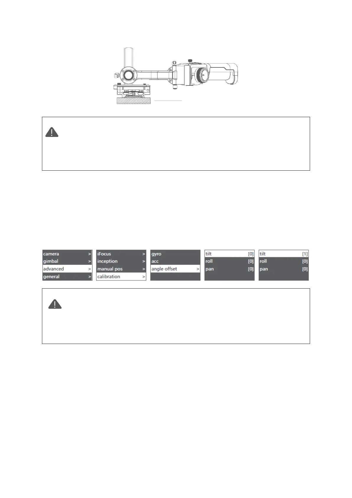 1. Během kalibrace udržujte gimbal v klidu, jakékoli otřesy způsobí odchylku