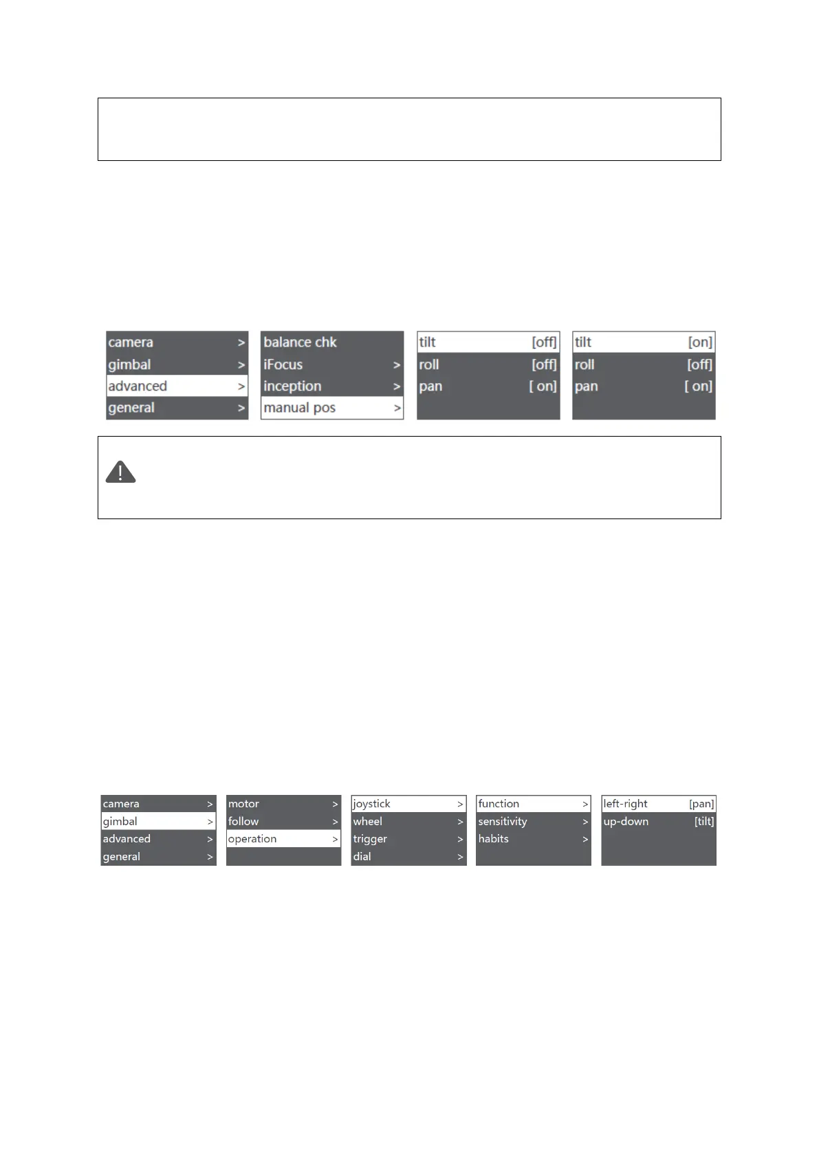 použití joysticku alebo nasledujúceho režimu. Ručné polohovanie osi náklonu je pri
