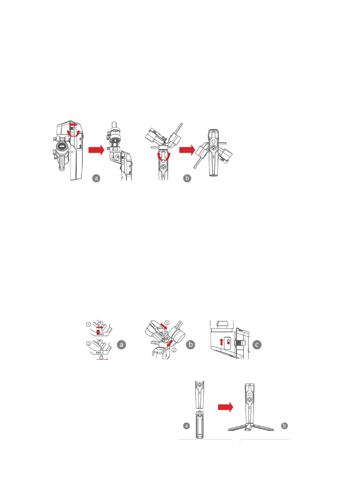 b) Rozšírený stav: Posuňte zámok a otočte kardan o 180° v smere hodinových ručičiek.