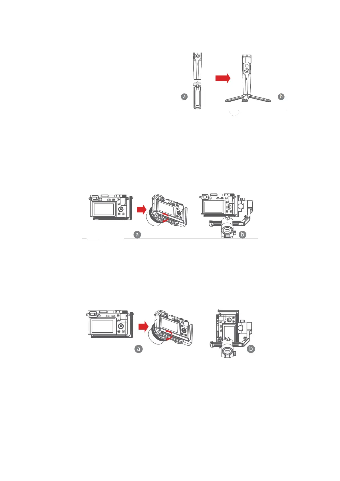 a) Legen Sie die längere Seite der L-Halterung unter die Kamera, um sie zu sichern, und