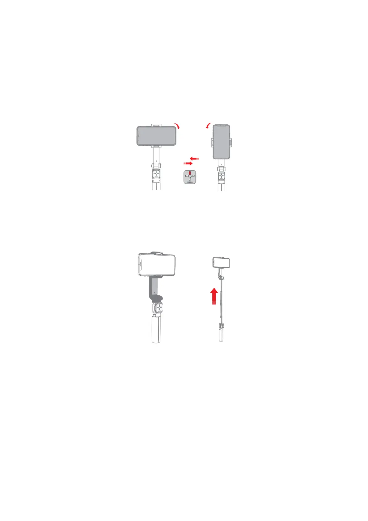 Um die Teleskopstange auszufahren, ziehen Sie an dem grauen Teil nach oben, wie