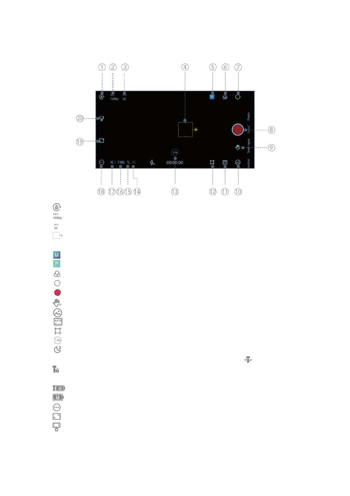 15. Status des Verriegelungsmodus (das Symbol zeigt an, dass der Gimbal im