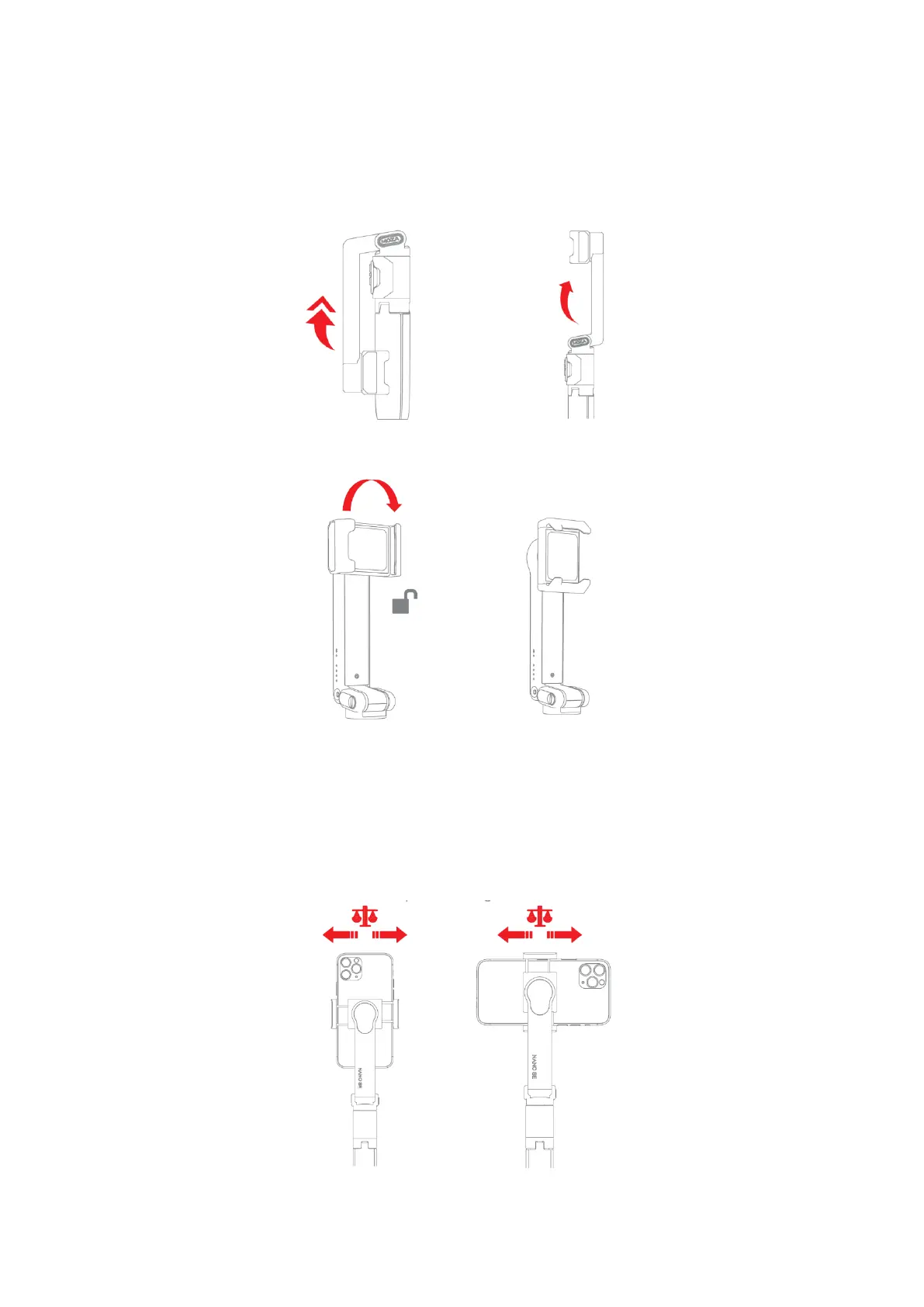 Turn the phone clip clockwise 90° to unlock the roll motor.