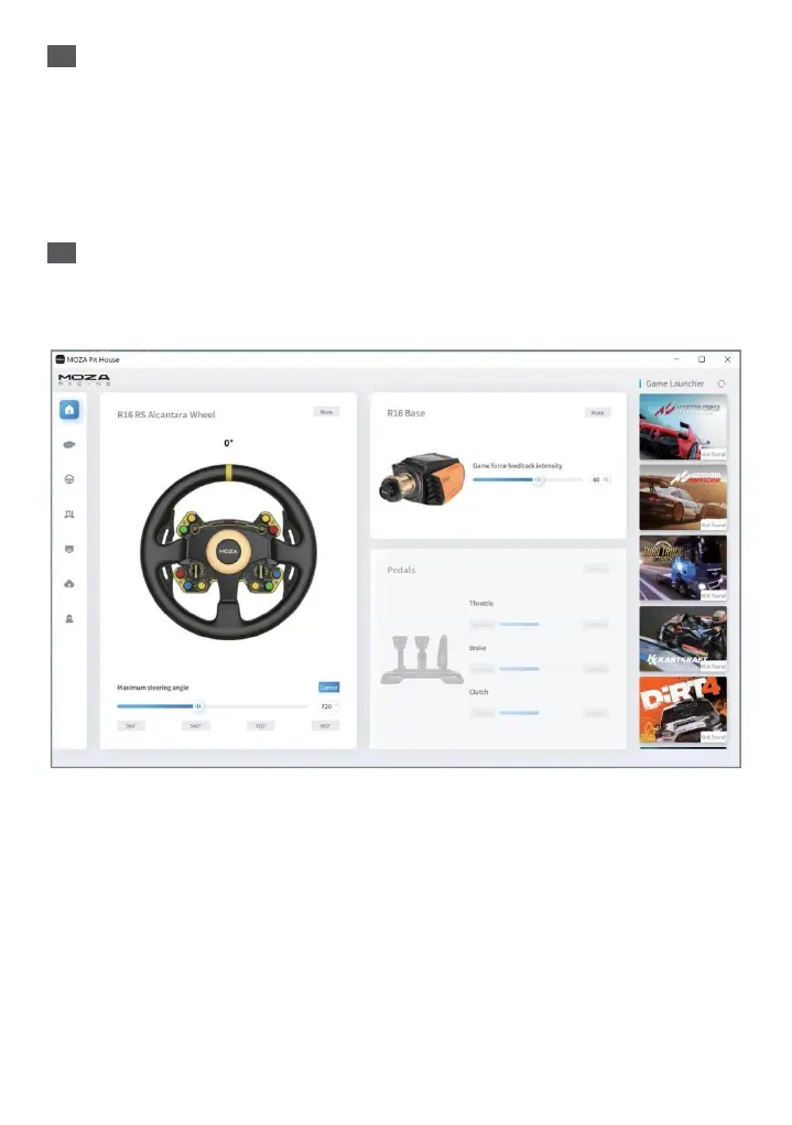 View the status of connected devices on the main page, set the base angle, force feedback,