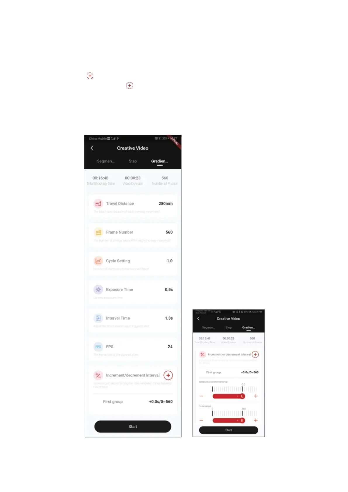 Select the gradient Step Time-Lapse and set the travel distance, frame number, cycle