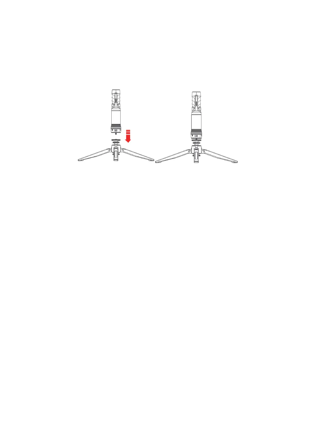 Richten Sie das Stativ auf die 1/4"-Halterung des SLYPOD PRO aus. Drehen Sie das Stativ,