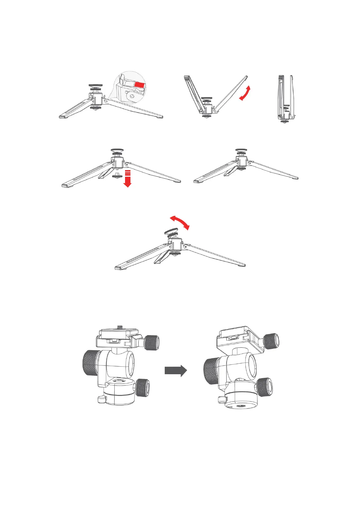 Ziehen Sie den Gimbalkopf an der 1/4-Schraube des Hauptgehäuses fest, und ziehen Sie