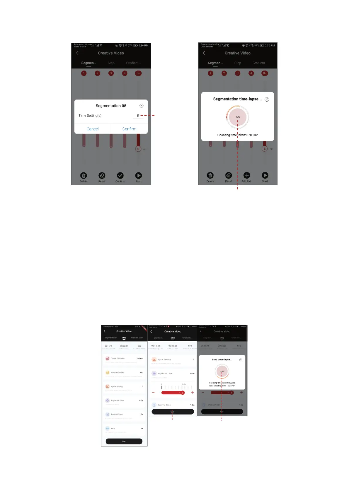 Wählen Sie den Schrittmodus, um Verfahrweg, Bildanzahl, Zykluseinstellung,