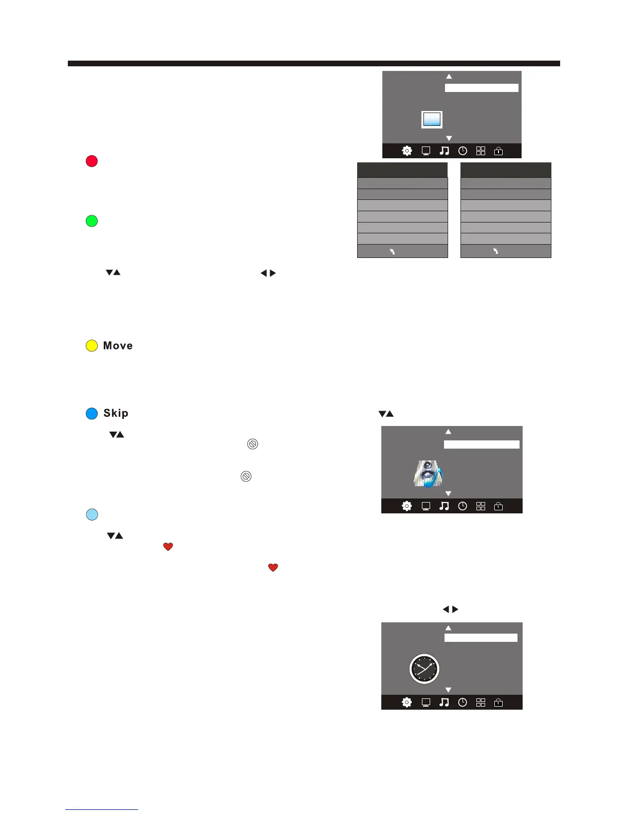 sleep time etc Press to move, press OK to