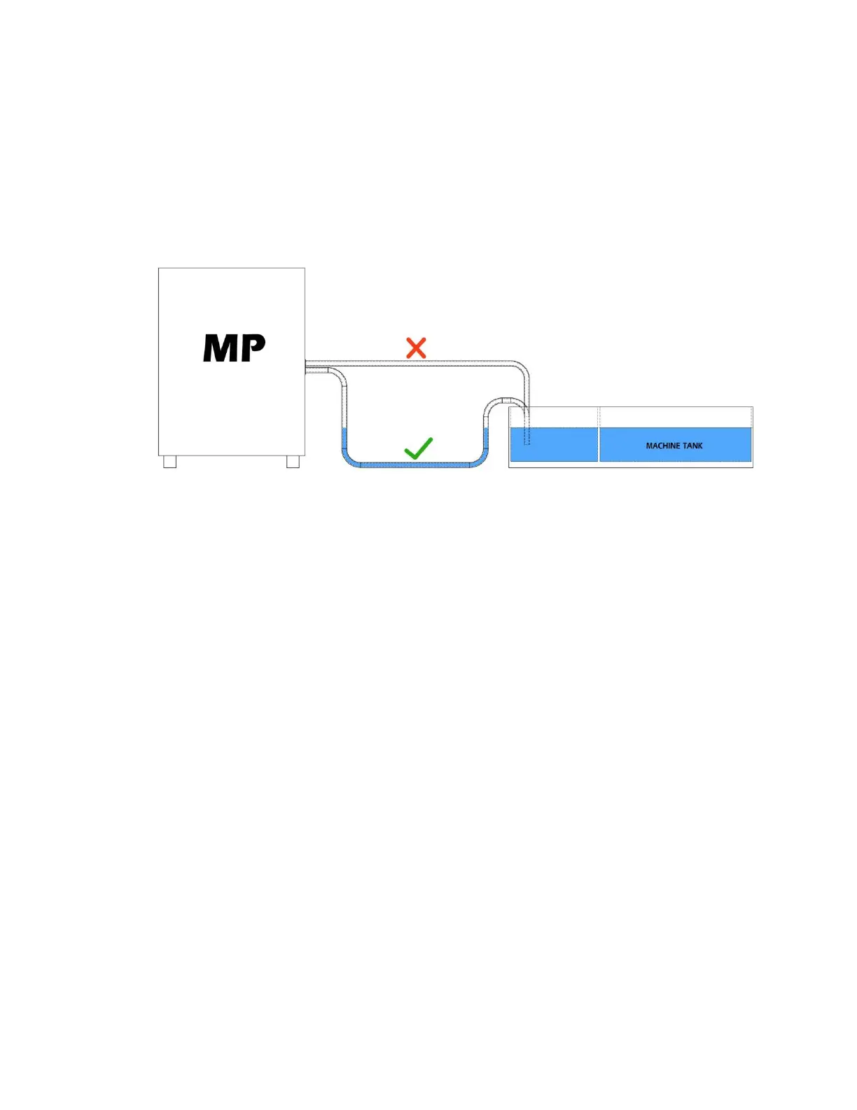 from unit will not drain back to machine tool coolant tank. Hoses not lying on the floor may lead to air