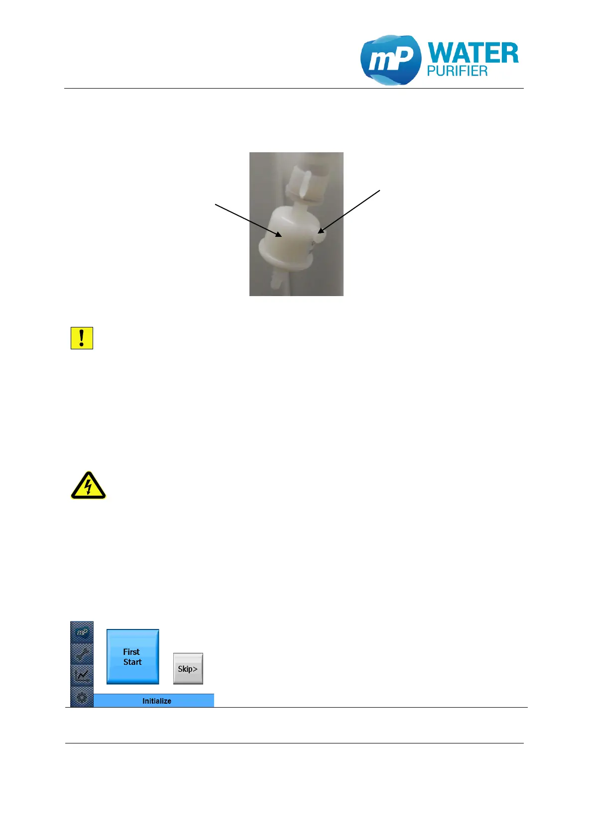 - Check the correct installation of the Aquinity² E or Aquinity² P (see chapter 4.3, 4.4,