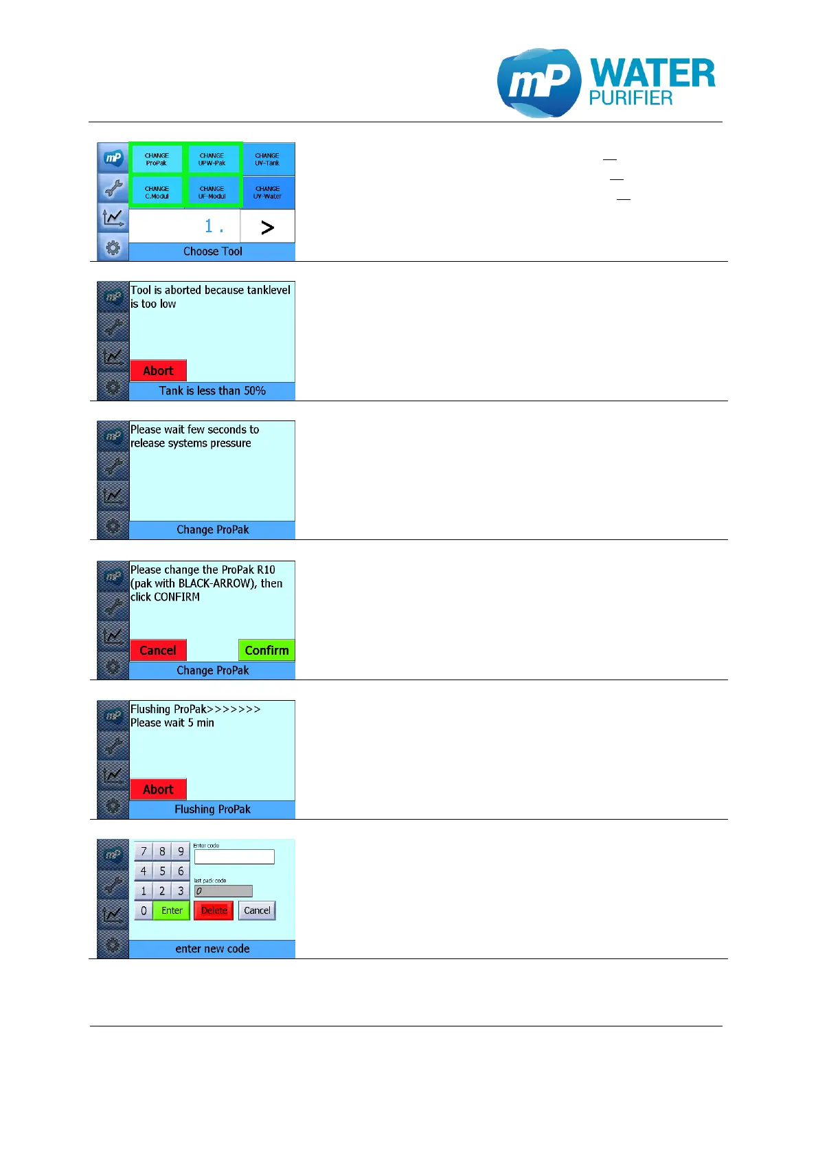 press the button “CHANGE UPW-Pak” or