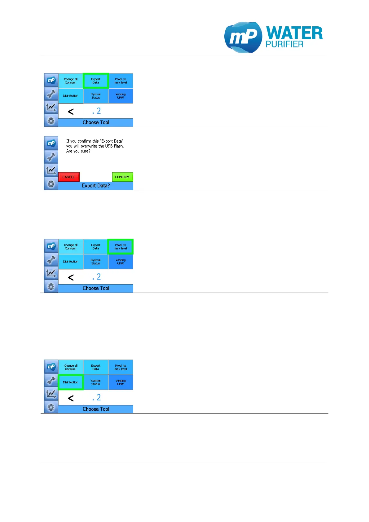 - Press “Disinfection” to start the tool.