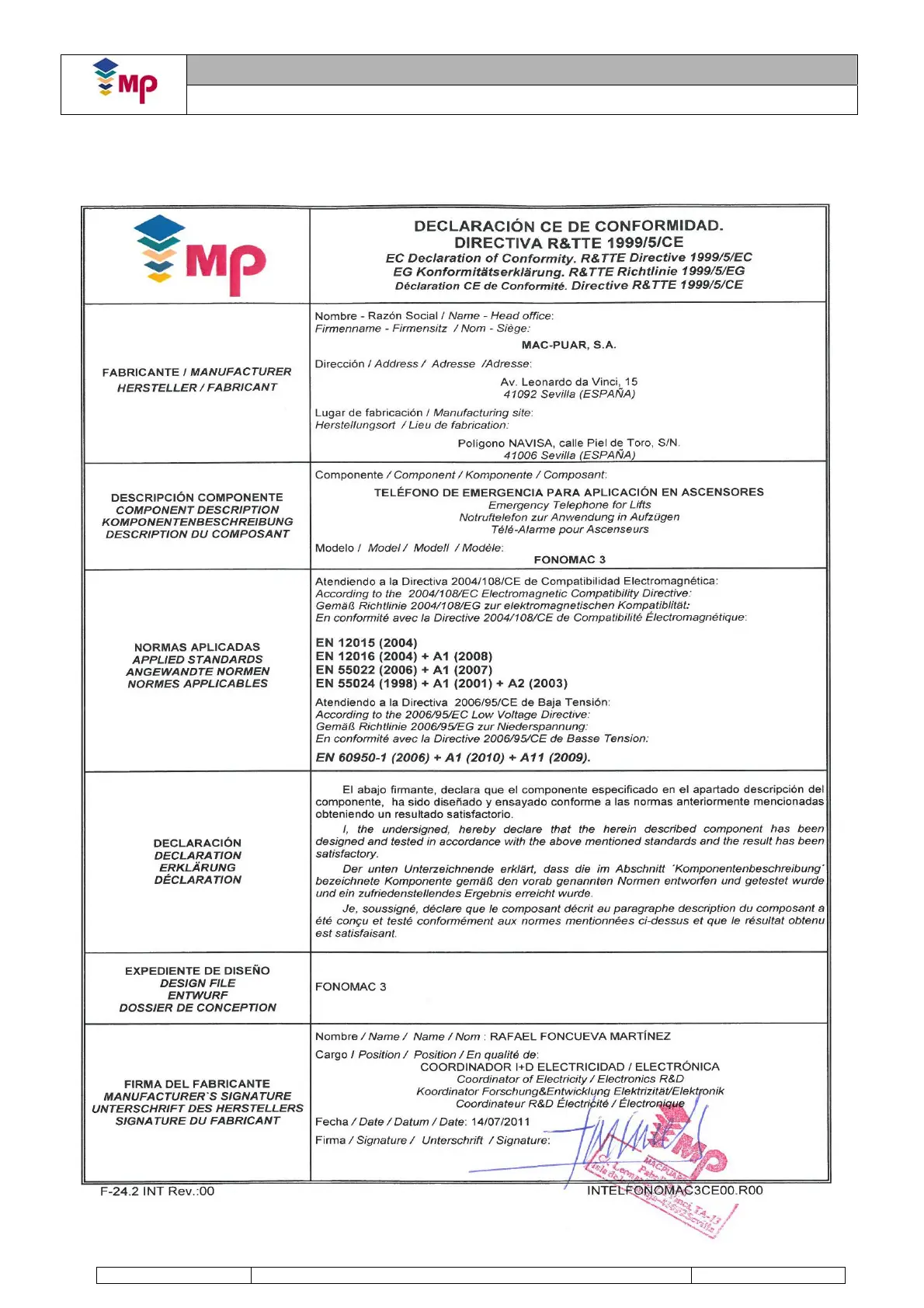 MP FONOMAC 3 - EC Declaration of Conformity