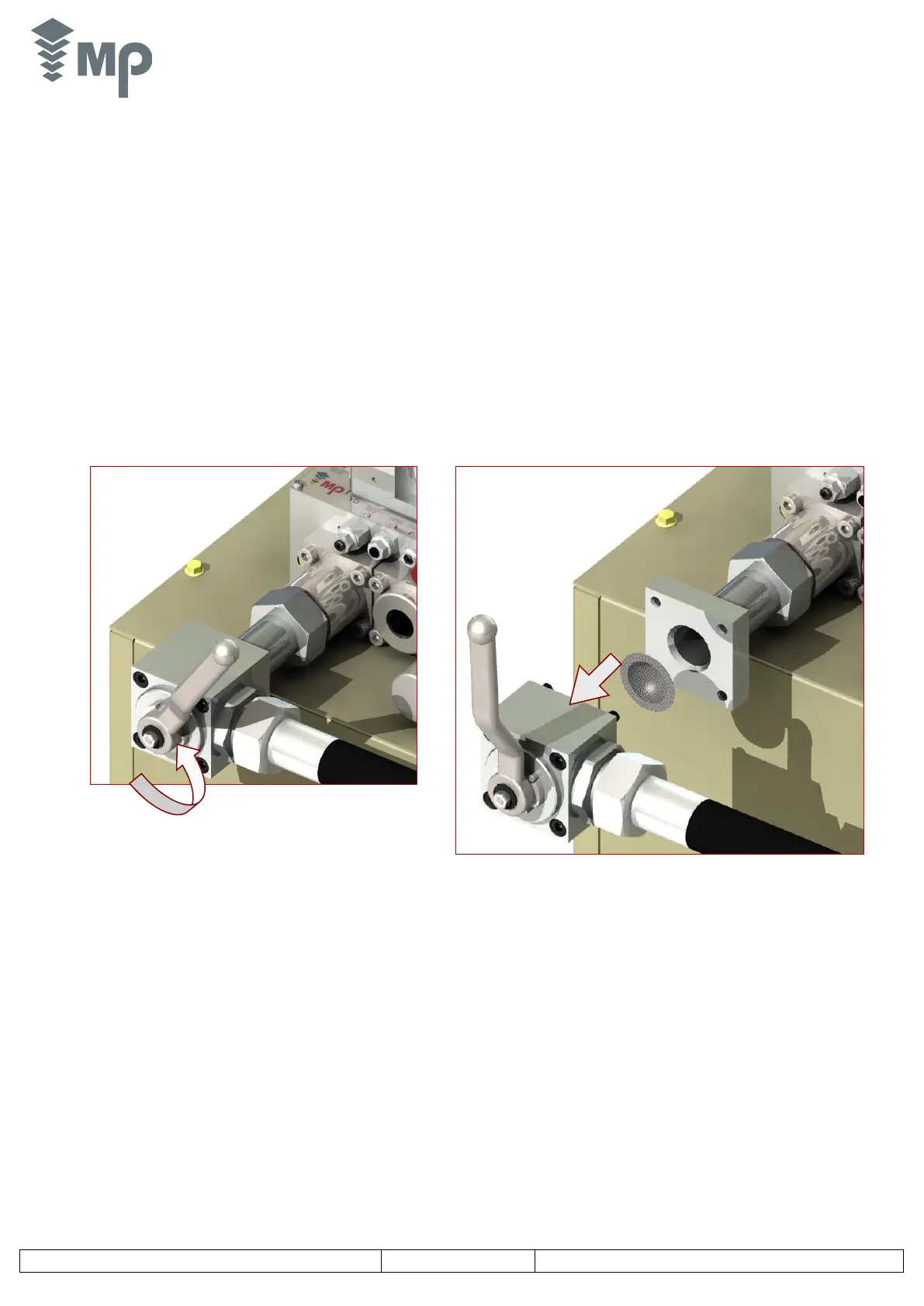 Clean with an appropriate brush, put together and open the shut-off valve following this sequence of steps (avoid sudden movements of the system).