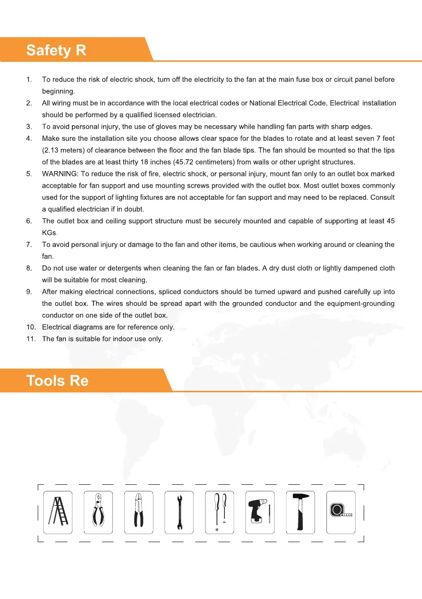 Tools required for assembly (not included): Electrical tape / Phillips screwdriver / Plier /