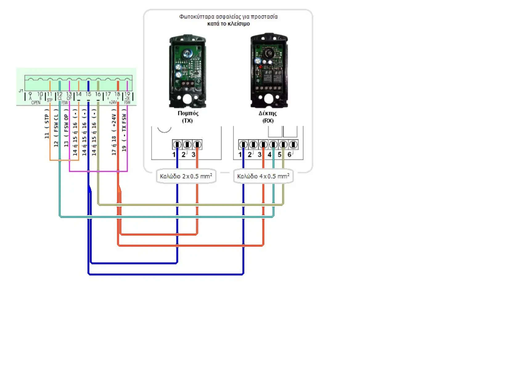 - Όταν διακόπτεται η δέσμη των φωτοκυττάρων για προστασία κατά το κλείσιμο πρέπει να σβήνει το LED FSWCL