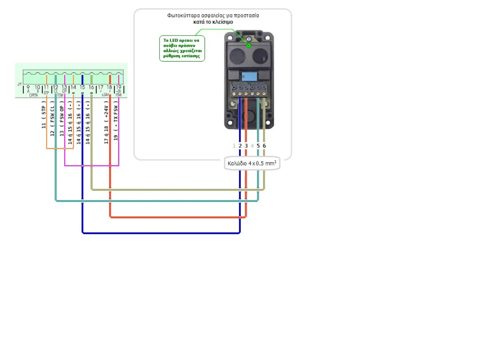 - Όταν διακόπτεται η δέσμη των φωτοκυττάρων για προστασία κατά το κλείσιμο πρέπει να σβήνει το LED FSWCL