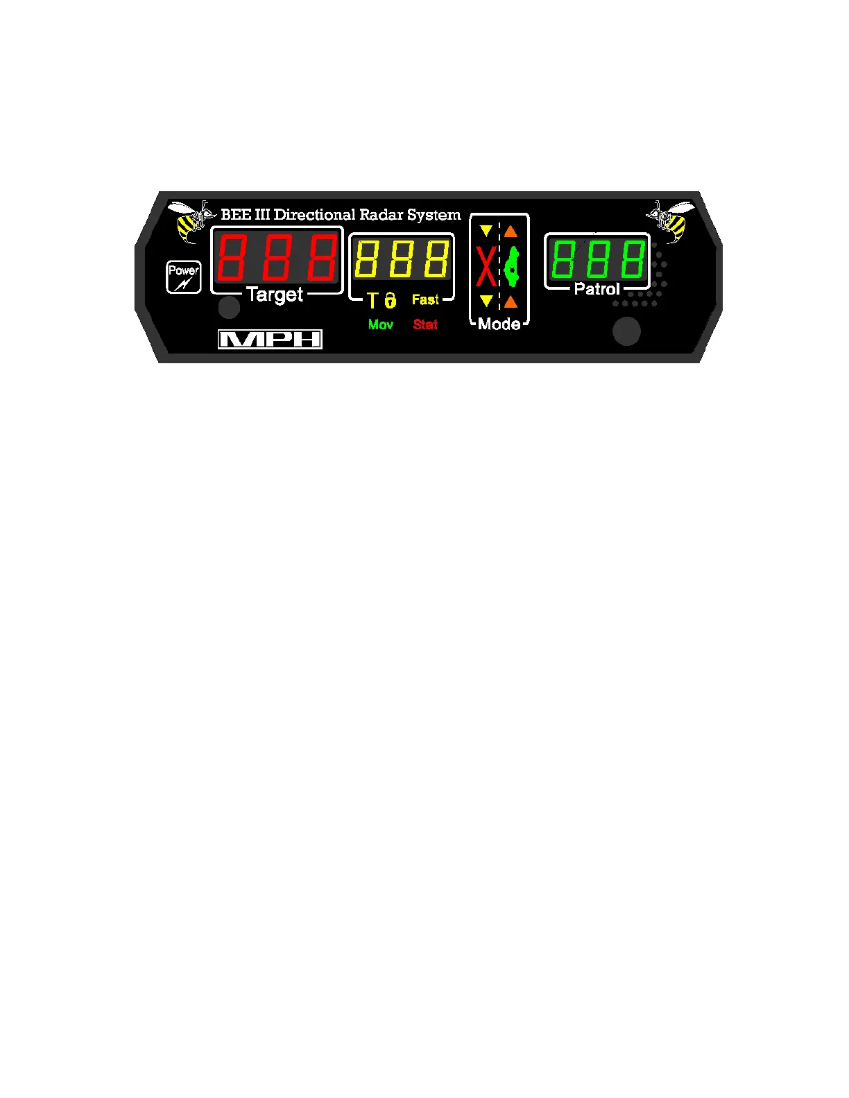 The BEE III has three windows for speed display. They are arranged by function and are