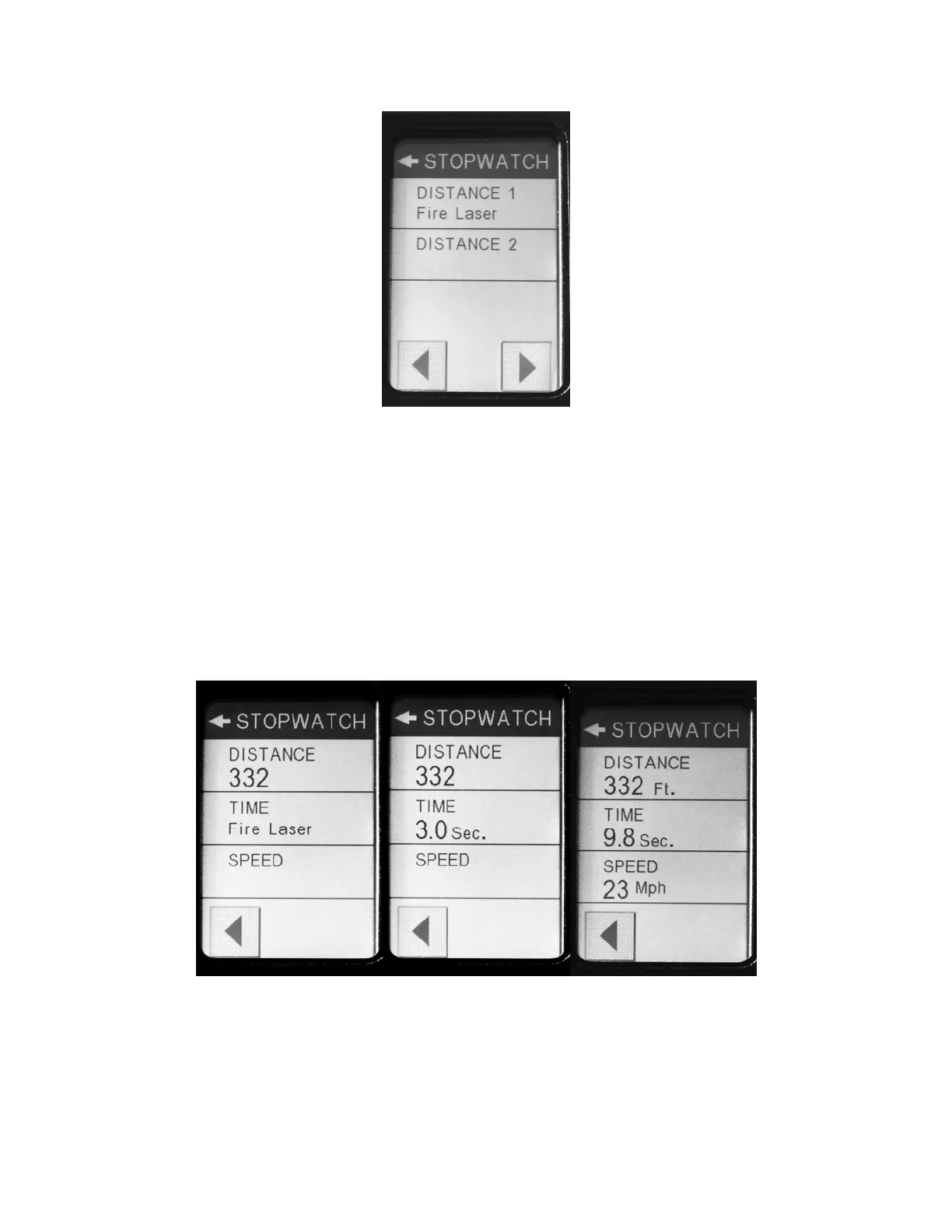 TheFIRINGSTOPWATCHpage(Figure17)willshowtheentereddistanceandwaitforyoutopressthe
