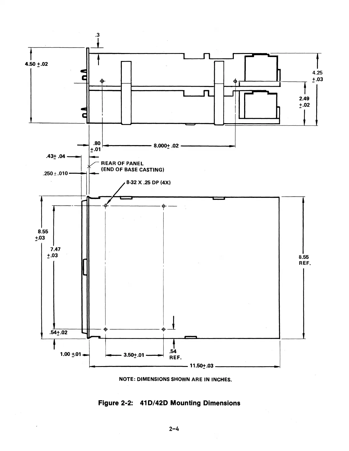 NOTE: DIMENSIONS SHOWN ARE IN INCHES.