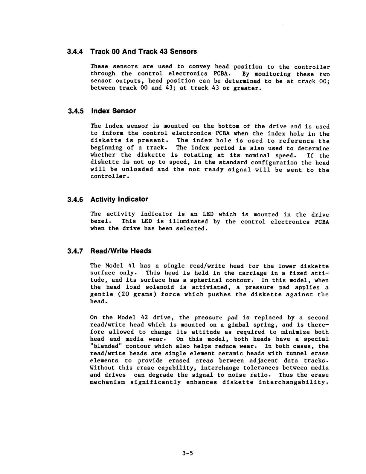 MPI 40 Series - Track 00 and Track 43 Sensors; Index Sensor; 3.4.6 Activity Indicator; 3.4. 7 Read;Write Heads