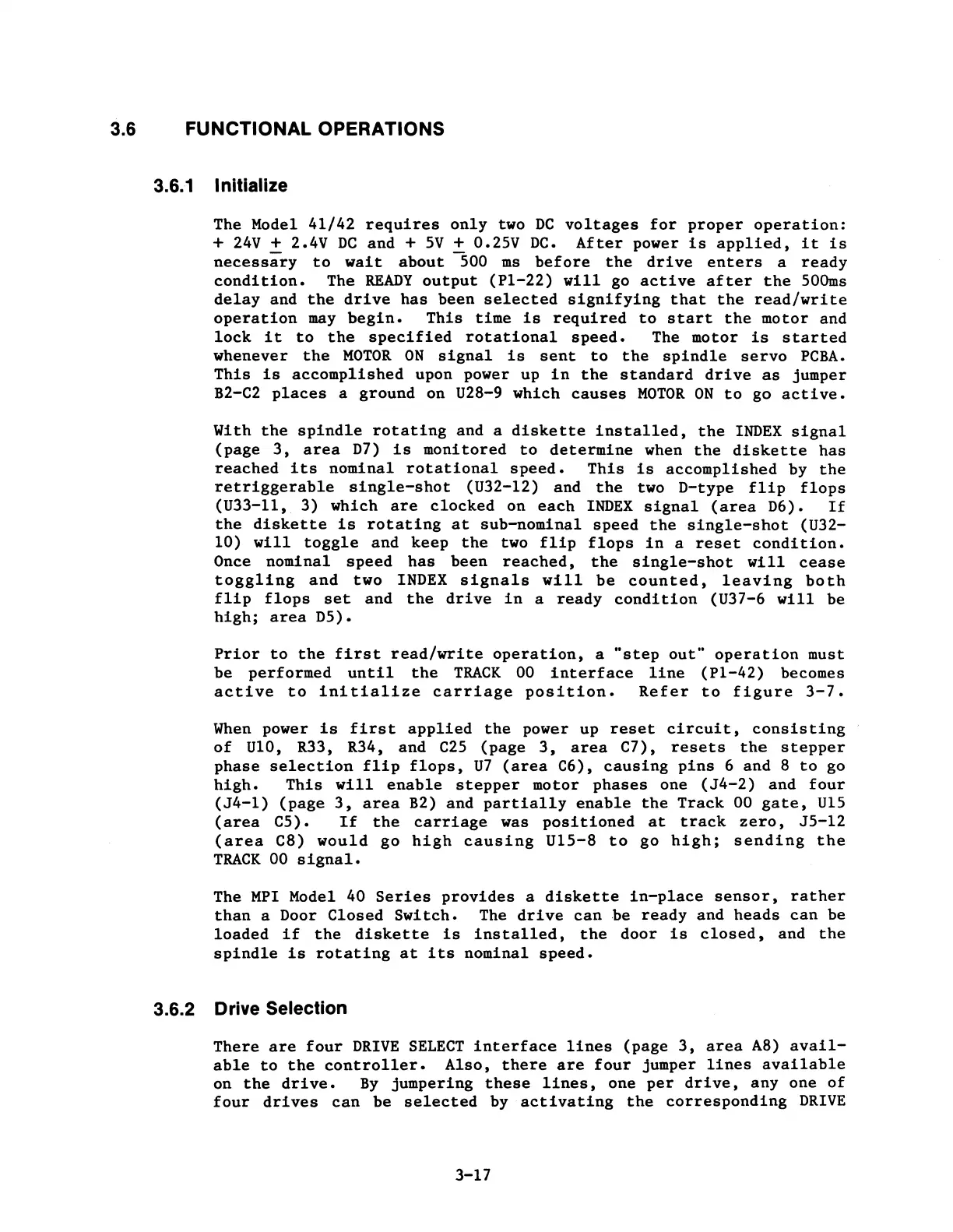 MPI 40 Series - Functional Operations; Initialize; Drive Selection; Functional Operation